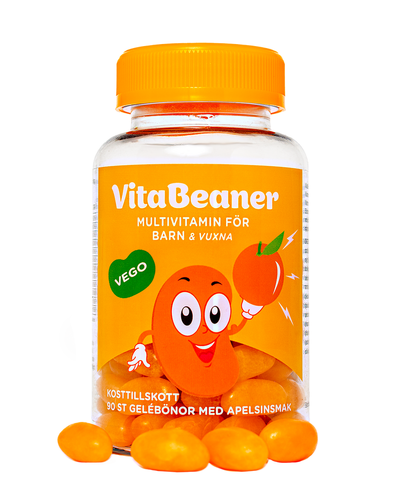 Gör den dagliga vitaminrutinen till dagens höjdpunkt! VitaBeaner är den smarta multivitaminen i form av goda, mjuka gelébönor med en fräsch smak av apelsin. De är så goda att det känns som lördagsgodis – men är proppfulla med viktiga vitaminer för att stötta växande barn.